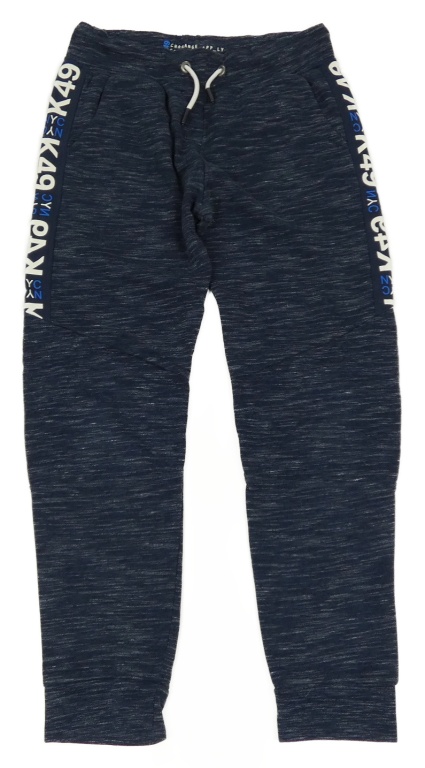 Tmavomodré melírované tepláky s čísly a písmenky alive