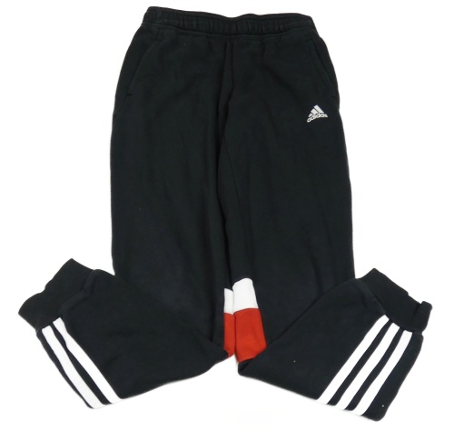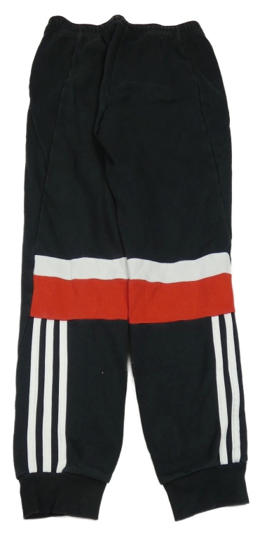 Černé tepláky s bílými a červenými pruhy a logem Adidas