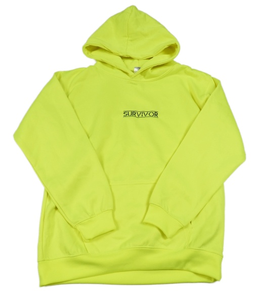 Neonově žlutá mikina s nápisem a kapsou a kapucí