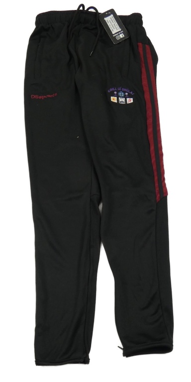 Nové - černé sportovní tepláky s vínovým pruhem a výšivkou