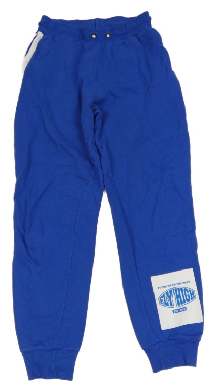 Tmavomodro-bílé tepláky s pruhy a nášivkou