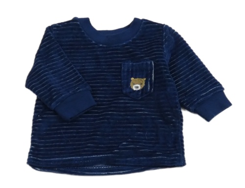 Tmavomodrá sametová žebrovaná mikina s medvídkem