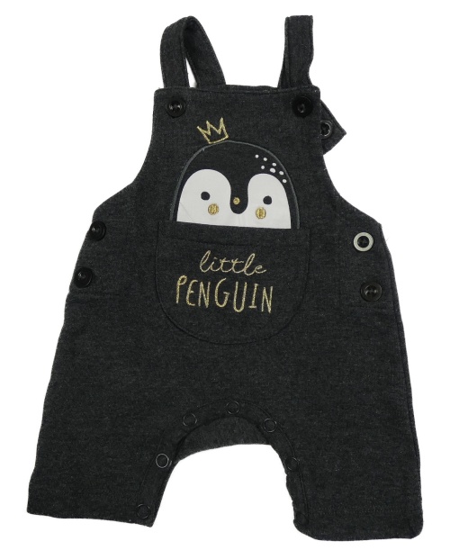 Antracitové laclové tepláky s tučňákem