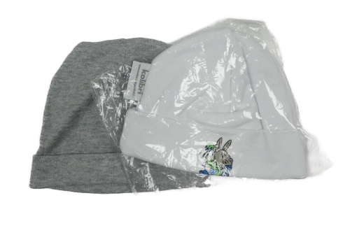 Nové - 2x - Čepice - šedá melírovaná, bílá se zvířátkem