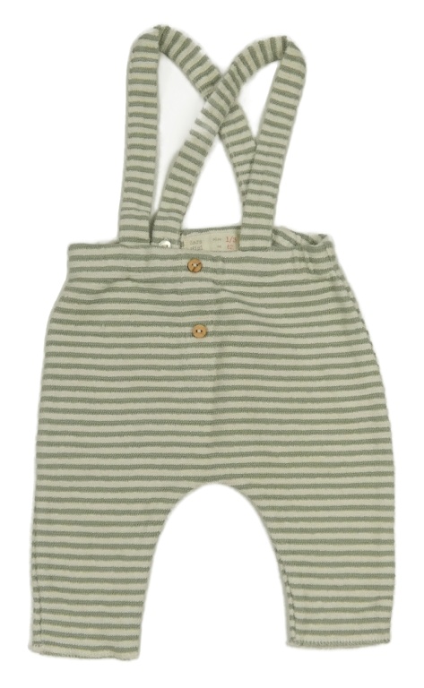 Zeleno-bílé proužkované pletené tepláky s kšandami Zara