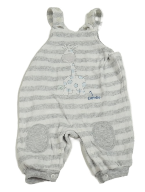 Bílo-šedé pruhované sametové laclové tepláky s žirafou
