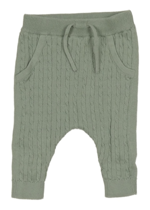 Zelenošedé pletené tepláky s copánkovým vzorem