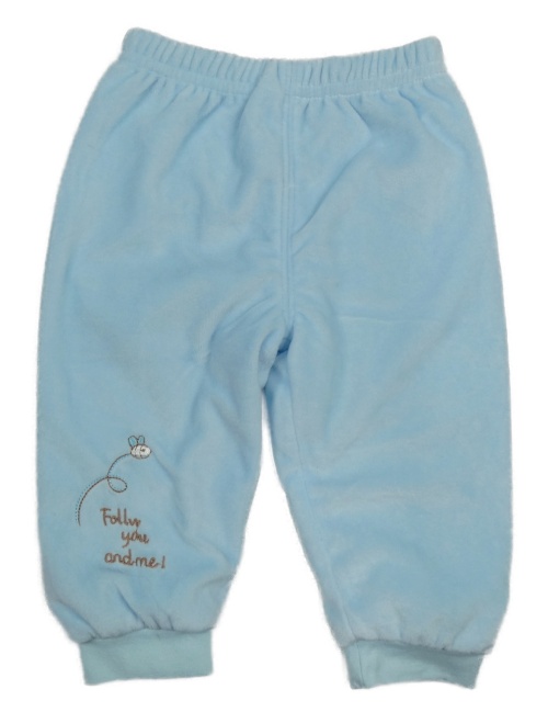 Světlemodré sametové zateplené kalhoty se včelkou
