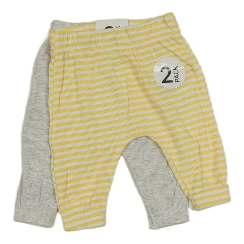 Nové - 2x žebrované lehké tepláky - žluto-bílé pruhované + světlešedé melírované s nášivkou