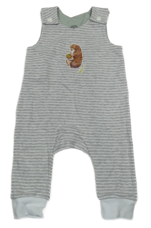 Šedo-bílé pruhované laclové tepláky s ježkem