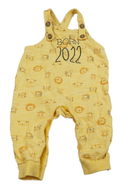 Tmavožluté melírované laclové tepláky se zvířátky a nápisem Topomini