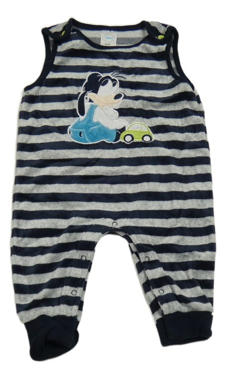 Tmavomodro-šedé pruhované sametové laclové tepláky s Goofym Disney