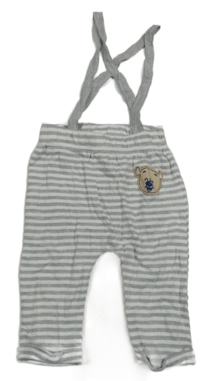 Šedo-bílé pruhované tepláky s medvědem a kšandami Ergee