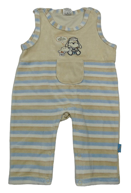 Béžovo-světlemodro-smetanové sametové laclové tepláky s pruhy a psy
