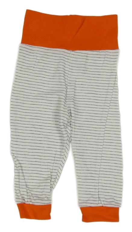 Bílé pruhované lehké tepláky s oranžovým lemem