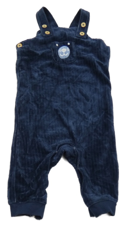 Tmavomodré žebrované sametové laclové tepláky s medvědem