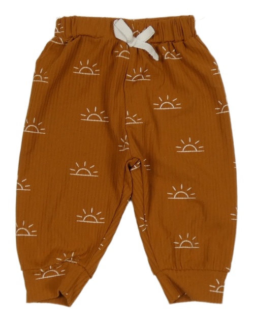 Rezavé žebrované lehké tepláky se sluníčky
