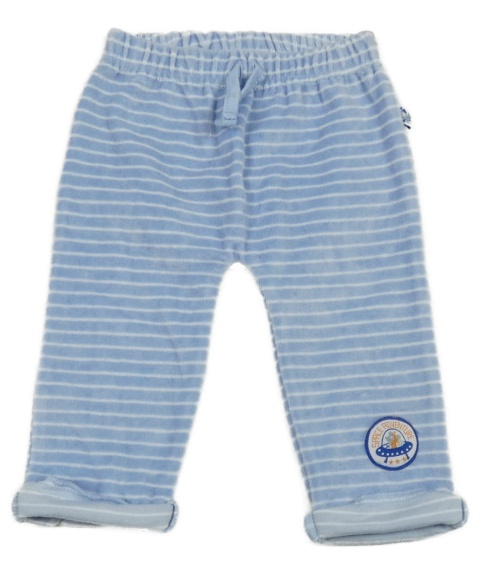 Modro-bílé pruhované sametové tepláky s nášivkou