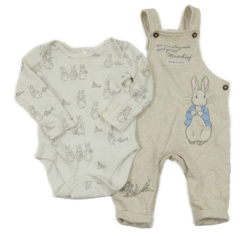 2 set - bílé body s králíky + světlebéžové laclové tepláky s králíkem