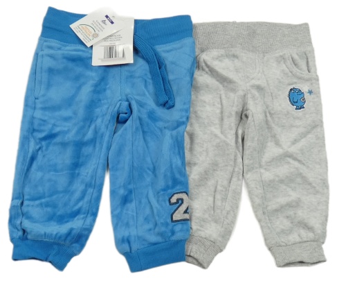 Nové - 2x Šedé + modré sametové tepláky s příšerkou Papagino