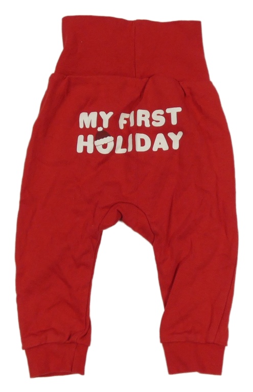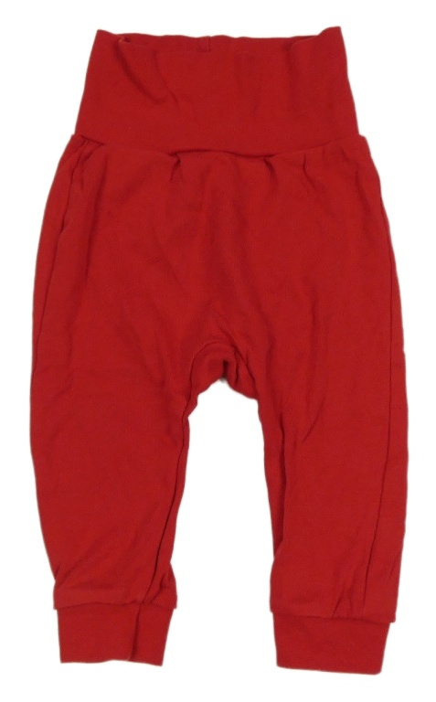 Červené lehké tepláky s nápisem H&M