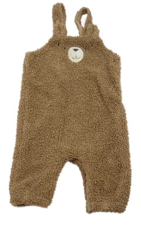 Hnědé huňaté podšité laclové kalhoty s medvědem Tu
