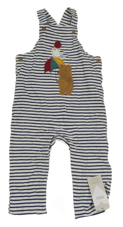 Nové - Tmavomodro-bílé pruhované laclové tepláky s medvědem M&S