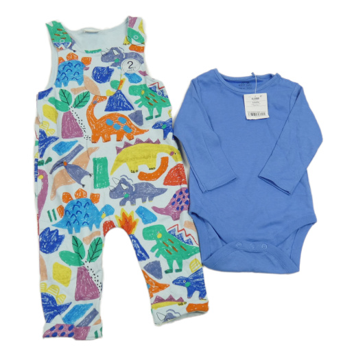 Nové - 2set - Světlemodré laclové tepláky s dinosaury + modré body Next
