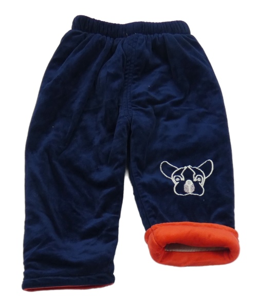Tmavomodré plyšové zateplené teplákové kalhoty s pejskem