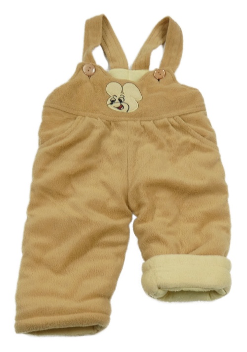 Hnědé chlupaté zateplené laclové tepláky s myškou