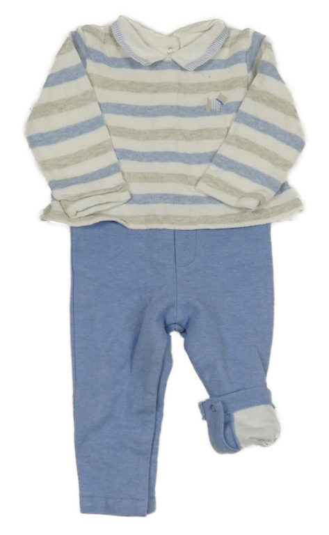 Modré laclové podšité tepláky s pruhovaným svetrem s pejskem a límečkem Mayoral