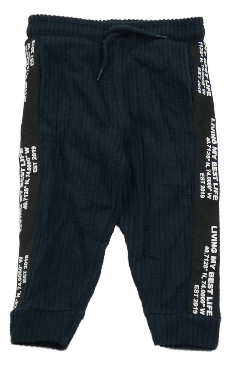 Tmavomodro-černé pruhované tepláky s proužkem s nápisy River Island