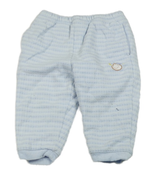 Světlemodro-bílé pruhované zateplené tepláky s nášivkou