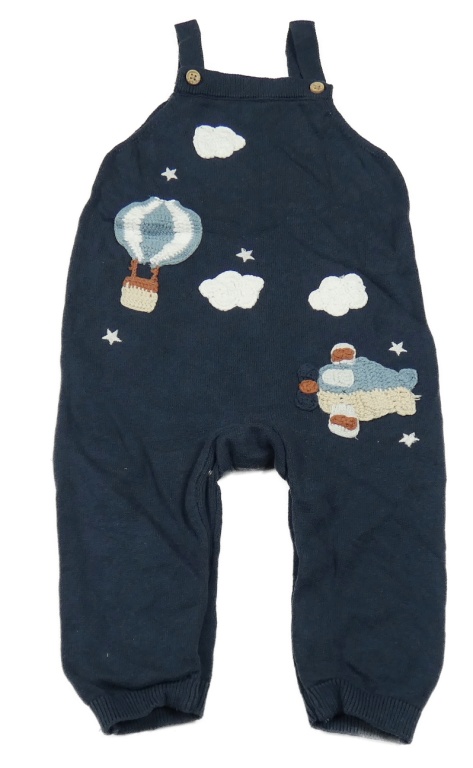 Tmavomodré pletené laclové tepláky s balónem a letadlem Tu