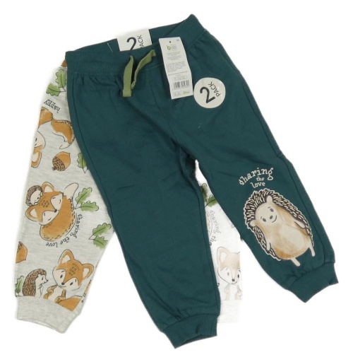 Nové - 2x - Tepláky - Šalvějové s ježečkem, světlešedé melírované s liškami a ježečky so cute