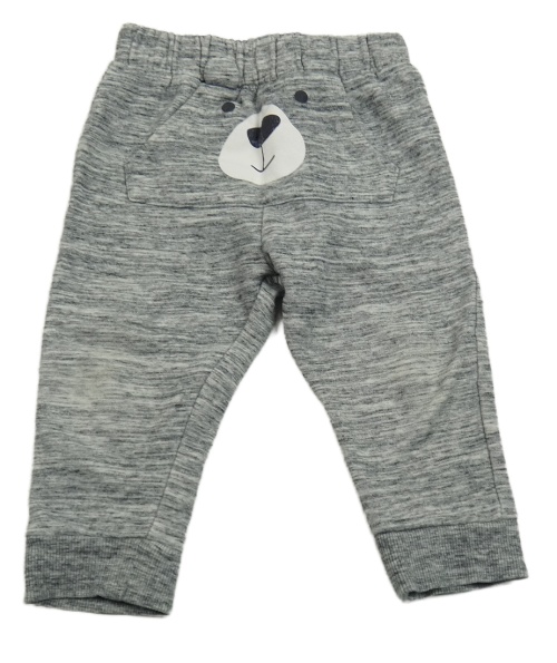 Šedo-bílo-černé melírované tepláky s kapsou s medvídkem Topomini
