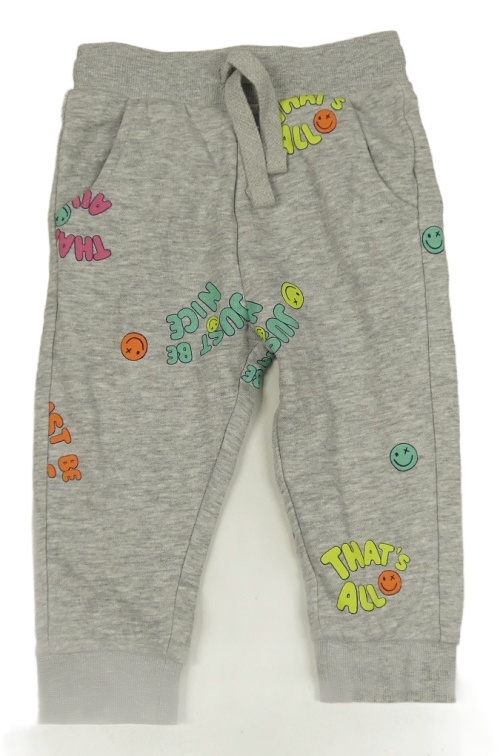 Šedé melírované tepláky se smajlíky a nápisy George