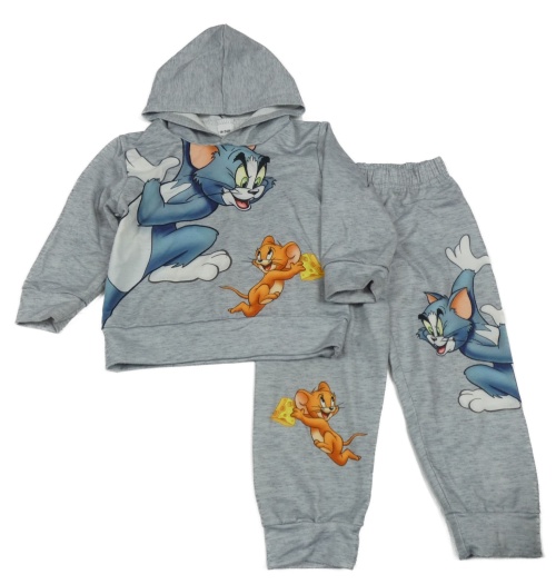 2 set - šedé tepláky s Tomem a Jerrym + šedá mikina s kapucí a Tomem a Jerrym