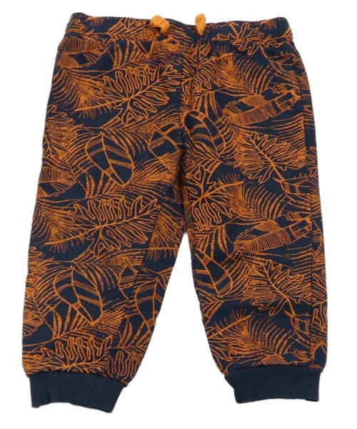 Tmavomodro-oranžové tepláky s listy