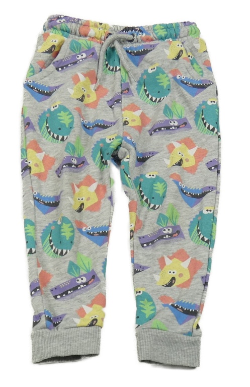 Šedé melírované tepláky s dinosaury Tu