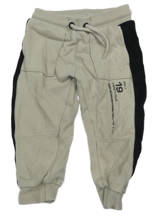 Béžovo-černé tepláky s číslem a nápisy Matalan