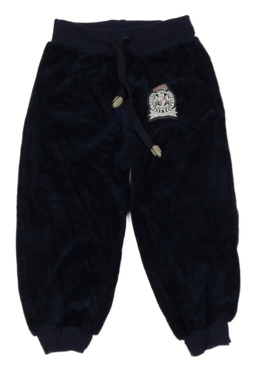 Tmavomodré sametové tepláky s nášivkou