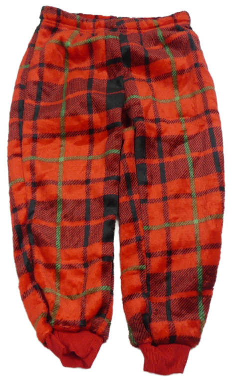 Červeno-černo-zelené kostkované chlupaté tepláky