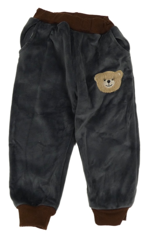 Tmavošedo/hnědé plyšové teplé tepláky s medvídkem