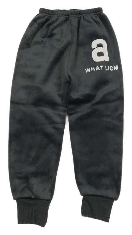 Tmavošedé plyšové cuff tepláky s nápisem
