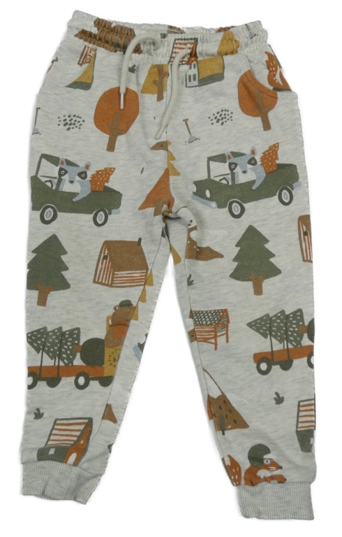 Šedé melírované tepláky se stromky a mývaly Tu