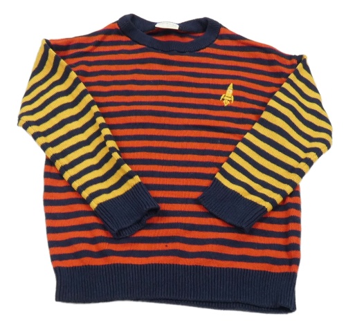 Červeno-žluto-tmavomodrý pruhovaný lehký svetr F&F