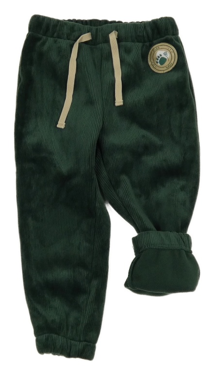 Tmavozelené plyšové žebrované tepláky s nášivkou