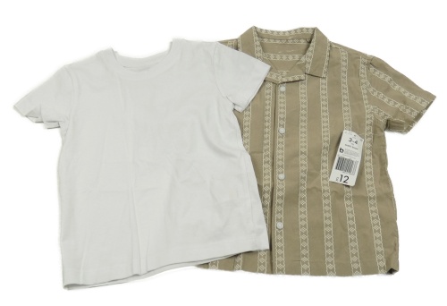 2 set - bílé tričko + béžová vzorovaná košile
