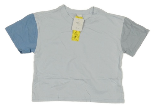 Nové - Světlemodro-modro-šedé crop tričko